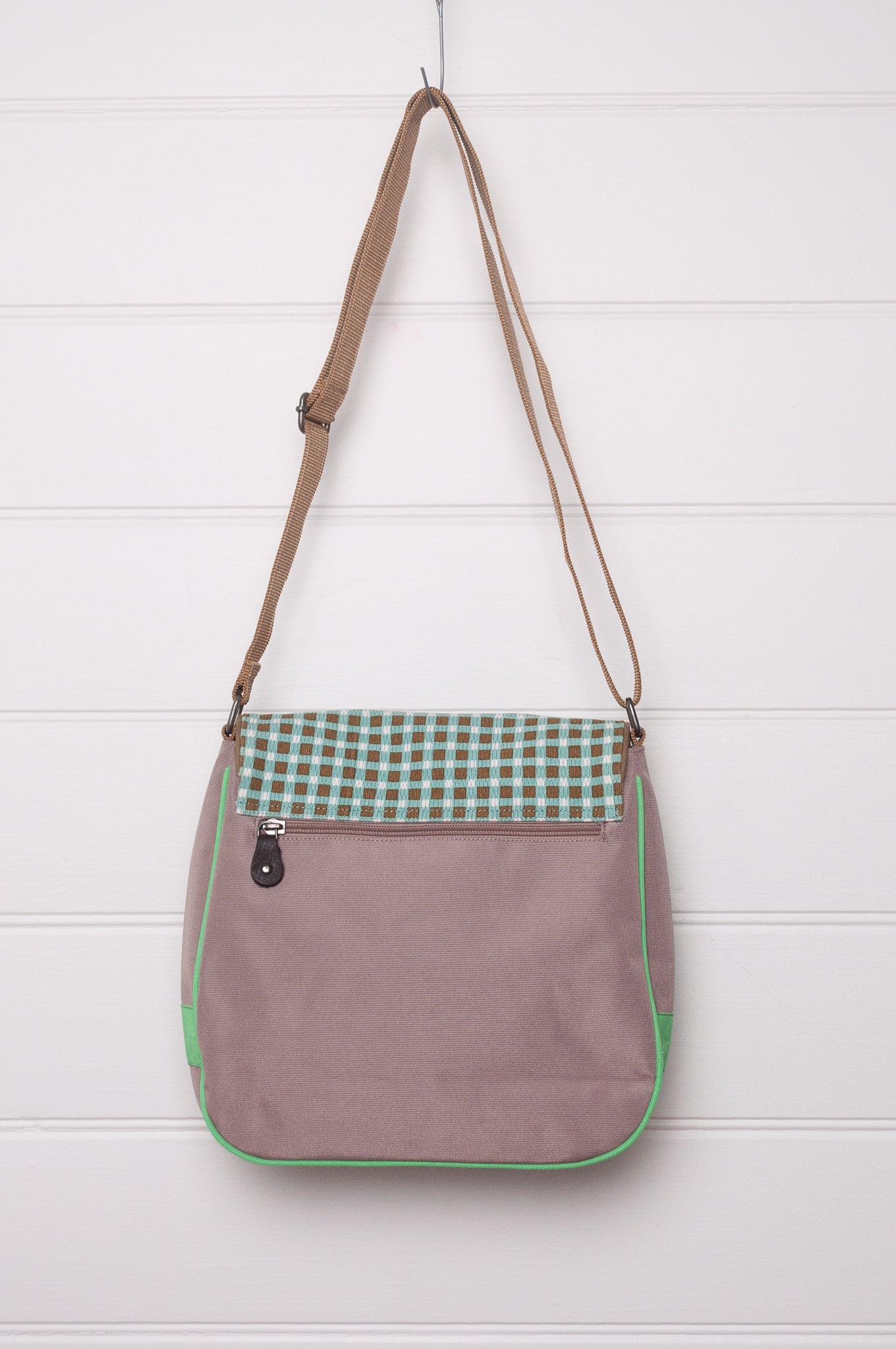 The Electro bag is a satchel style bag with adjustable shoulder strap, featuring a flap over with double tab magnet closure, internal and external zipped pockets.