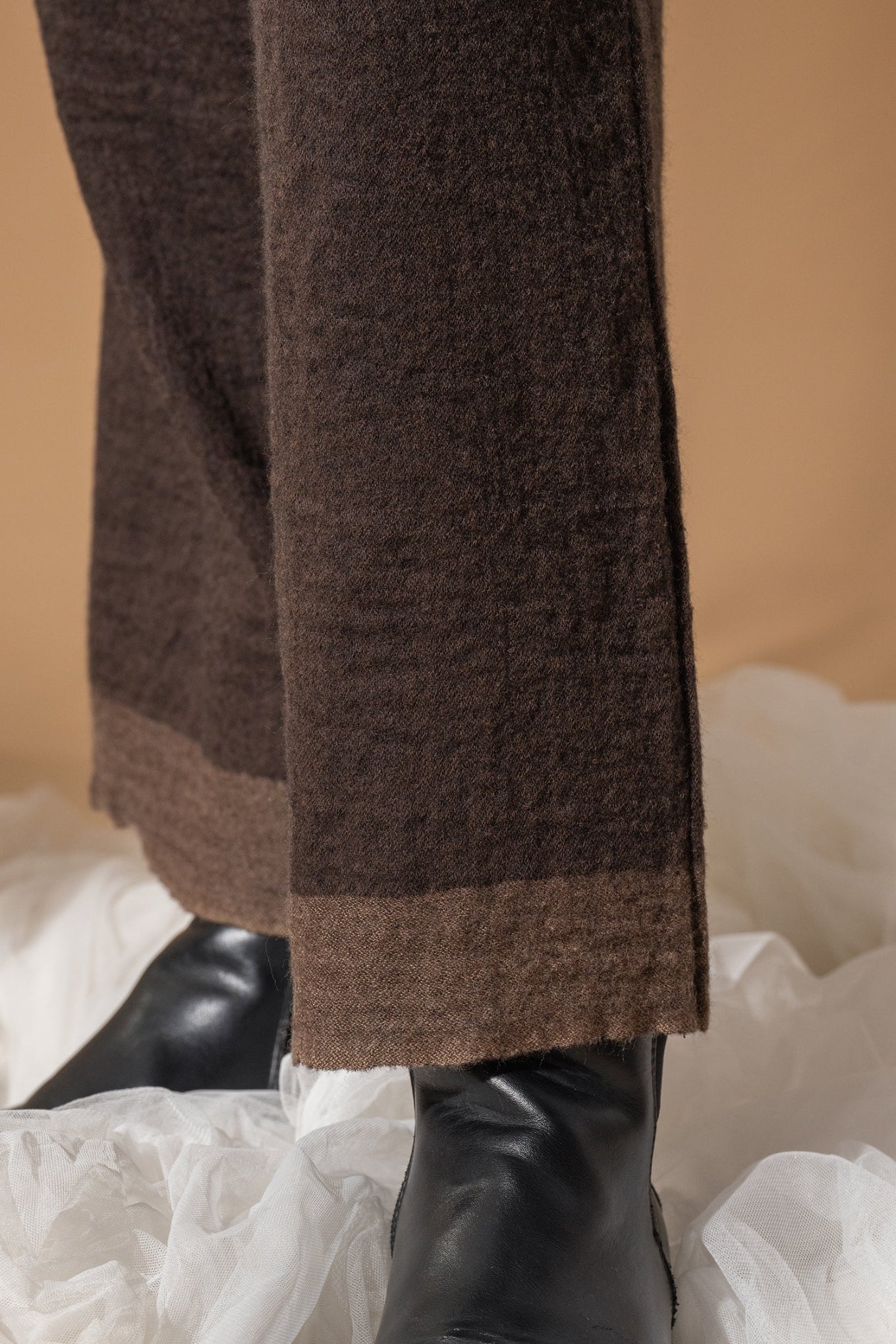 The Dityaa pants are an easy fit, cropped wide leg, with an elastic waist with drawstring tie. In beautifully soft pure wool, they will keep you cosy in style through the cooler months.